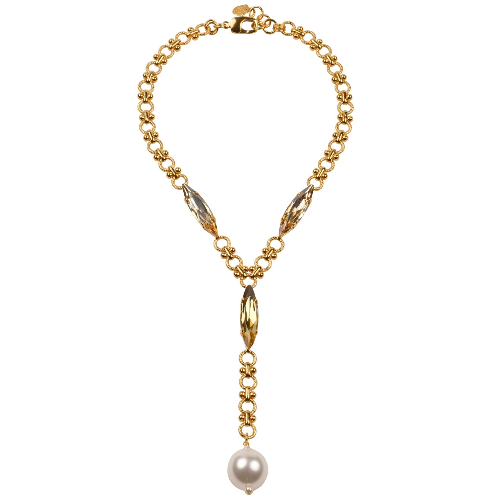SOLARIA adjustable necklace made in gold tone brass with Swarovski crystal & pearl